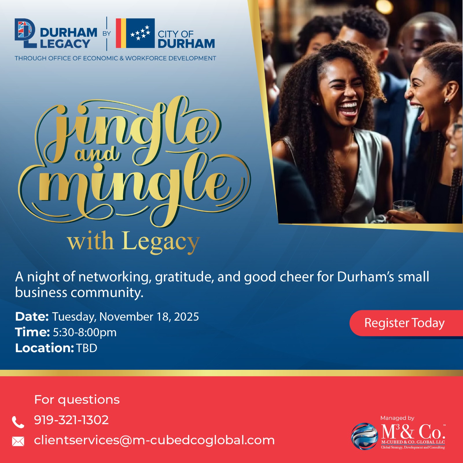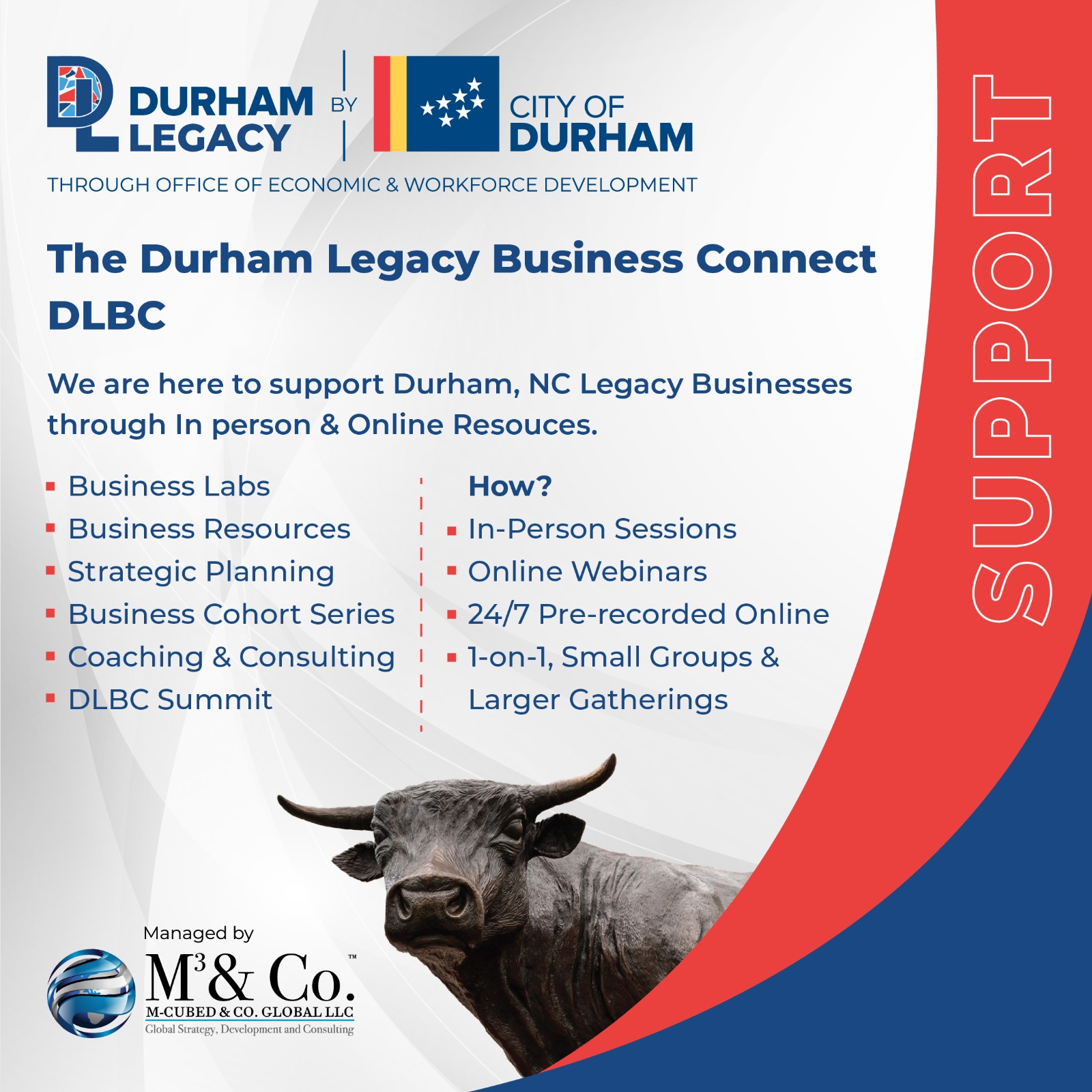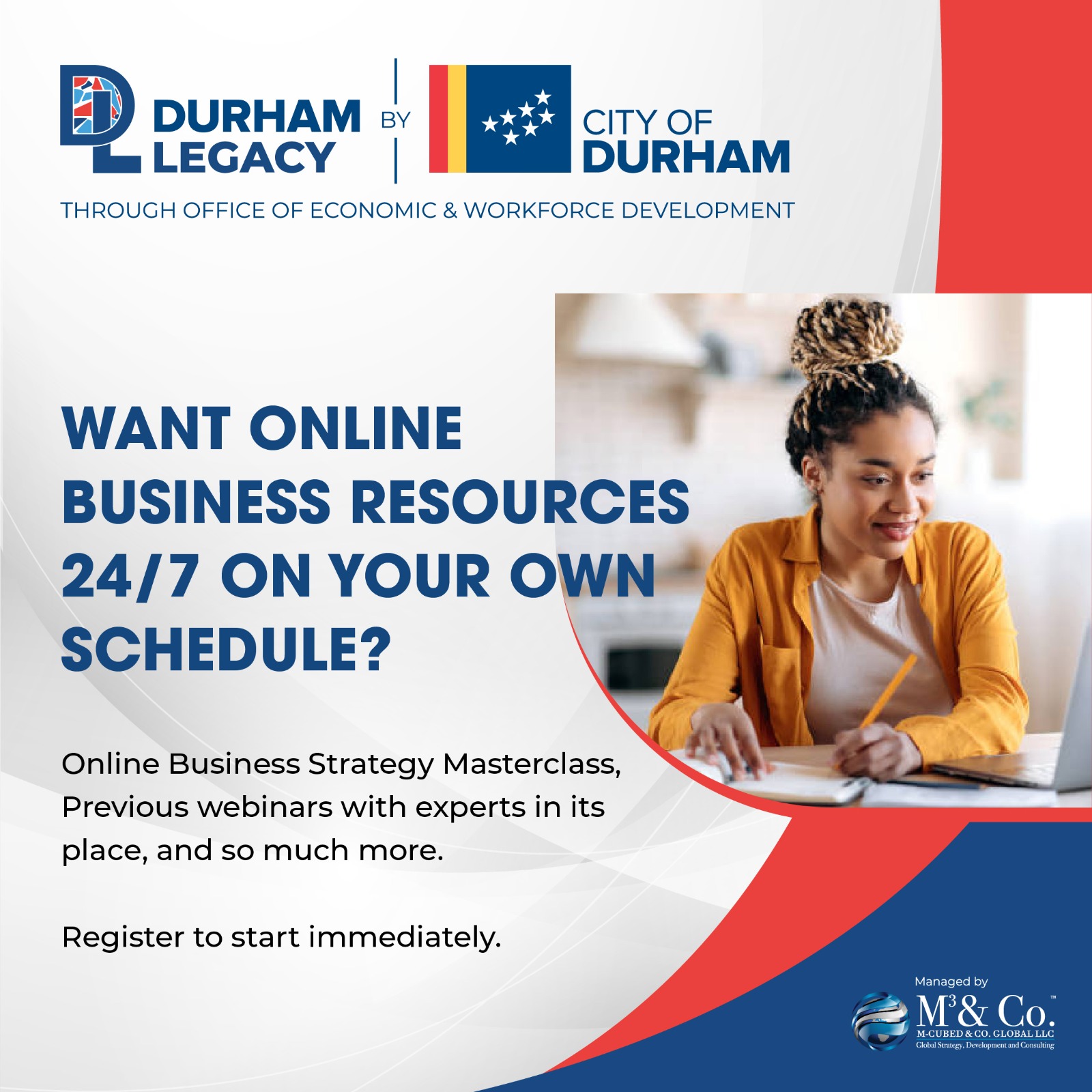 Registration is open to Durham-based businesses of various years and Durham Legacy Businesses and Entrepreneurs who have been operating in Durham, NC, for 12 years or more. Some services are segmented based on years of business in Durham. The focus of resources is to help connect, elevate, and serve the traditionally underutilized business community, women, and minorities who have stood the test of time for 12 years or more.