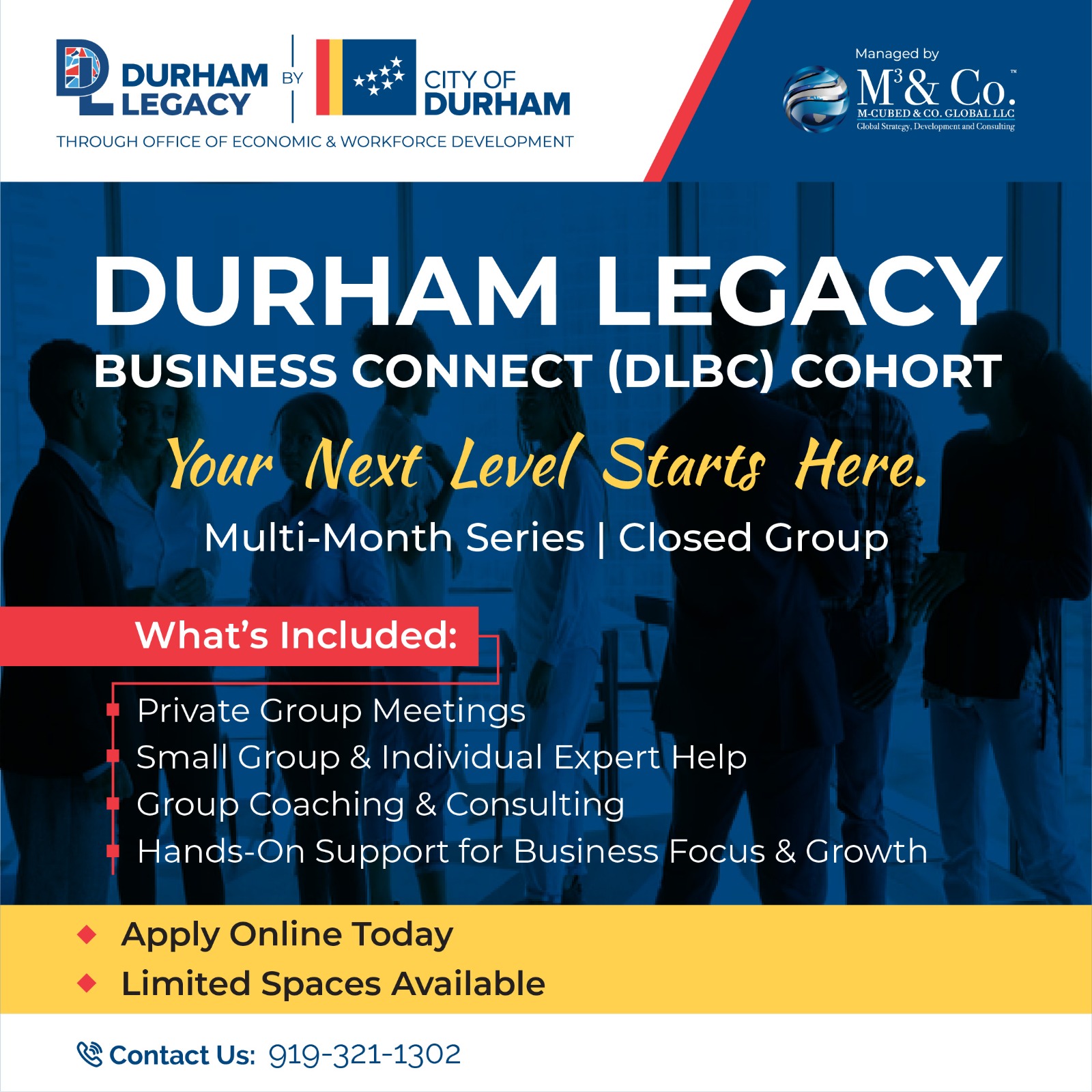 The Durham Legacy Business Connect (DLBC) Cohort Series is a high-impact, multi-month program designed exclusively for long-standing Durham businesses that have been the backbone of our community for 15 years or more. This closed-group experience provides the tools, guidance, and connections needed to sharpen focus, strengthen strategy, and prepare for the future.
